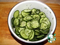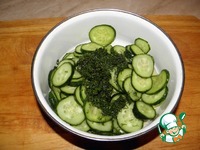 Огурцы моем, нарезаем тонкими кружками (если у огурцов кожица толстая, лучше срезать) |