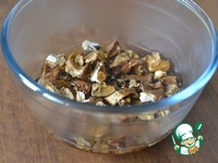 Горсть сухих грибов залить кипятком. |