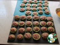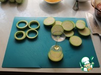 Кабачки нарезаем кружочками, толщиной приблизительно 1 см. В каждом кружочке выдавливаем серединку. |