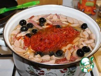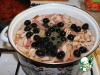 Добавляем маслины. Доводим до кипения и кипятим 5 минут. |