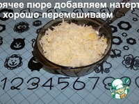 В горячее пюре добавляем натертый сыр. Хорошо перемешиваем. |