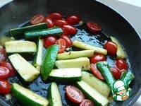 Описание: Хочу предложить приготовить острую вкусную закуску (гарнир) из цуккини с маленькими помидорками. Для этого я использовала мелкие цуккини. Готовится закуска быстро. Можно использовать в качестве гарнира к мясу.