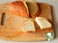 Данного количества хватит на 2-3 формочки диаметром 10 см. Остатки яичной смеси долейте в формочки, поверх батона |