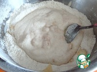 Оба вида муки просеять, смешать. Можно использовать только белую пшеничную муку, но все же рекомендую использовать и цельнозерновую, шпалдовую. Вы сразу же ощутите разницу и оцените результат. |