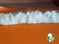 Форму для кекса смазать маслом. Я на всякий случай смазала и силиконовую. Сложить в нее наш рулет спиралью, прижать. Поставить в теплое место на 20 минут на расстойку. |