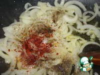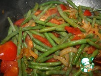 Разогреваем масло и обжариваем лук с добавлением перцев. Жарим около 5 минут. |