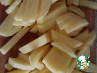 Картошку нарезать соломкой и обжарить. Лучше брать сорта картофеля, чтоб не разваливался при жарке. |