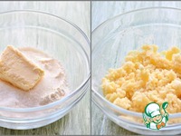 В это время приготовить сладкую крошку. Сахар, охлажденное сливочное масло и муку перетереть руками или ложкой. Убрать в холодильник до тех пор, пока крошка не понадобится. |