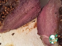 Описание: Пастрами я увидела по телевизору в передаче про путешествия - оно выглядело волшебно. Его резали тонкими ломтиками и делали с ним сендвичи. Нашла рецепт на сайте праймбиф, но приготовила с некоторыми изменениями.