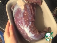 После достать мясо из маринада, обмыть, обсушить полотенцем и поставить томиться в духовку на 11 часов при температуре 60 градусов. |