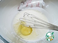 Для теста: Налить в чашу 250 мл готового йогурта. Добавить соль и сахар, перемешать. Вбить яйцо. |