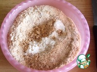 Сухари (я брала обычные панировочные из белого хлеба) смешать с мелко помолотыми орехами, разрыхлителем теста и цедрой. |