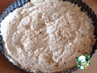 К желткам добавить смесь сухарей и орехов, размешать. В три захода добавлять белки, осторожно перемешивая лопаткой. |