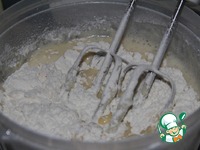 Муку смешать с разрыхлителем и просеять к взбитой массе. |