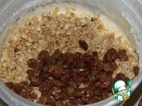 Вмешать изюм, коньяк и рубленные орехи. |