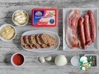 Описание: Горячий сырный дип с беконом и охотничьими колбасками