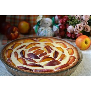 Выкладываем нектарины на начинку по вашему желанию. Выпекаем в разогретой духовке при 180гр 45минут. |