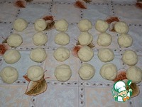 Разделить тесто на 24 части, скатать в шарики. Вес одного шарика около 70 г. |