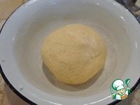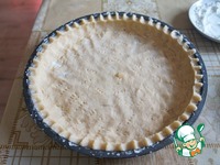 Большую форму (d 24 см) с невысокими бортами застелить пекарской бумагой, слегка смазать ее маслом. Тесто распределить по форме, оформив бортик. |