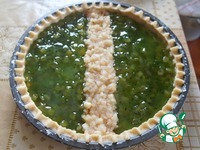 На тесто выложить начинку – любые фрукты, густое варенье или джем (у меня был джем из киви с крыжовником от фирмы "Махеев", две упаковки, и немного яблочной начинки). |