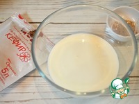 Сначала приготовим кефир. В чашу термоса засыпьте один пакетик закваски фирмы Орсик для приготовления кефира. |