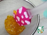 Если в джеме кусочки фруктов или косточки, то протираем через мелкое сито. У меня покупной апельсиновый джем. |