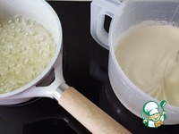 Соединяем белок и джем в одной чаше. Белок должен быть хорошо отделен и посуда доожна быть чистая и сухая. В кастрюле с толстым дном соединяем агар, воду и сахар. |