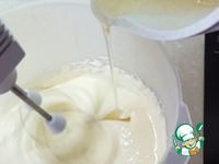 Тонкой струйкой вливаем сироп в белок с джемом. Взбиваем на максимальной скорости. |