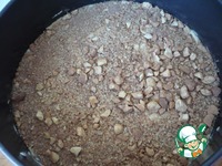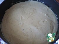 Для приготовления пирога возьмите разъемную форму диаметром 18 см, дно формы застелите фольгой или пергаментом. Выложите в форму половину теста. |