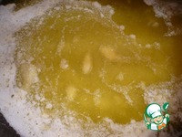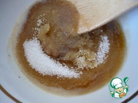 Вылейте масло в чашку и добавьте сахар. Дайте массе немного остыть. |