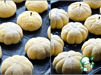 А можно сделать булочки похожими на тыковки. В середину булочки вставить гвоздику и сделать от нее несколько неглубоких надрезов по бокам изделия. |