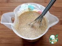 Смешайте просеянную муку, сахар и соль с кефиром и яйцами. Добавьте отруби и манную крупу, хорошо перемешайте венчиком. Оставьте на полчаса для набухания клейковины. |