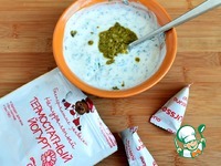 Для соуса нужно измельчить промытую сухую зелень, посолить по вкусу и добавить соус песто. Размешать – и готово! |