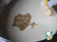 Размягченное сливочное масло взбить с белым и коричневым сахаром. По одному добавить яйца и взбить до пышного состояния на максимальной скорости. |