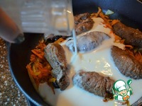 В той же сковороде обжарить лук и натертую морковь. Выложить рулетики, влить йогурт, посолить, заправить перцем. |
