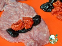 ОСНОВНОЕ БЛЮДО. Мясо нарезать на тонкие пластины, отбить. Приготовить сухофрукты. |