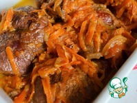 Следите за количеством соуса, при необходимости добавить горячей воды или бульона. Тушить на медленном огне до мягкости мяса, пару раз перевернув. |