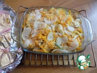 Вынимаем форму из духовки и снимаем фольгу. смотрим на готовность картофель. Чтобы верх зарумянился, уже без фольги форму отправляем в духовку ещё минут на 10-15. |