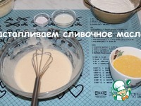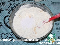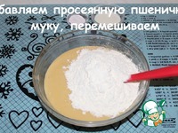 Добавляем просеянную ппшеничную муку и перемешиваем. |
