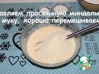 Добавляем просеянную миндальную муку. Хорошо перемешиваем. |