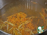 Морковь с сельдереем спассеровать до полуготовности, отставить. |
