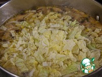 Затем всыпать нижнюю часть листьев капусты, довести до кипения и поварить еще 5 минут. В последнюю очередь всыпать нежную верхнюю часть листьев, |