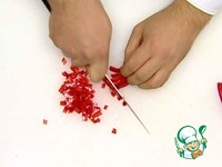 Болгарский перец очистить, нарезать мелким кубиком, положить в миску |