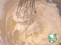 Пока бисквит готовится, взбить блендером маскарпоне с сахарной пудрой. |