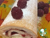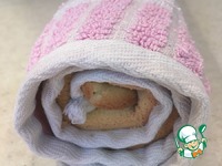 Горячий бисквит выложить на влажное полотенце, присыпанное сахарной пудрой, плотно скрутить. |