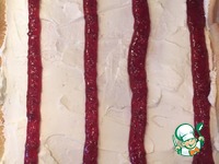 Развернуть бисквит, равномерно распределить маскарпоне и джем, скрутить, убрать в холод. |
