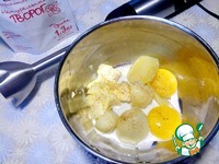 Переложить шпинат в другую посуду, добавить сливки или молоко, желтки и пробить погружным блендером в кашицу. Затем добавить ложку муки, перемешать. |