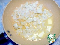 Спассеровать в сливочном масле лук и чеснок, на маленьком огне, чтоб не подгорело масло. |