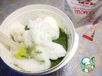 Взбить белки до легкой пены и добавить к шпинату, перемешать сверху вниз лопаточкой. |