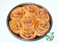 21. После растойки пирога, снимаем "тряпицу" и смазываем заготовки взбитым желтком. Переключаем температуру духовки на 180 С и печем пирог до румяной корочки, минут 30. |